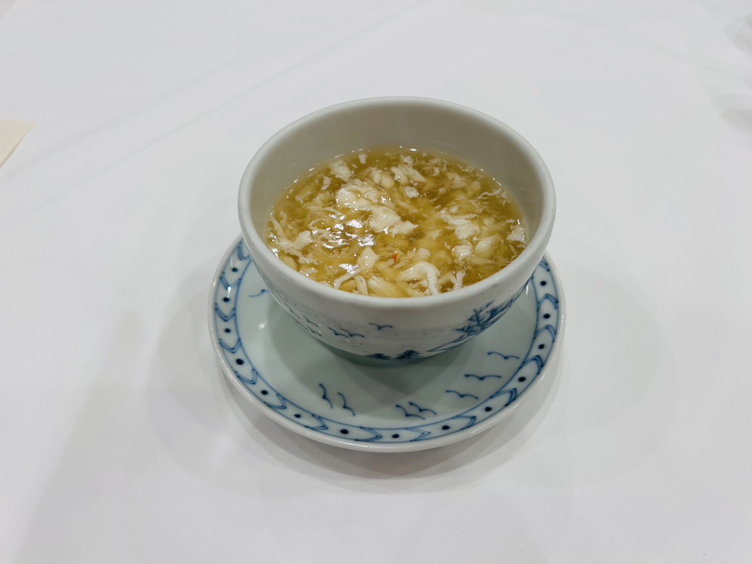 旨味がぎゅっと詰まったふかひれスープ。とろりとした口当たりと深い味わいが広がり、心も体も温まる一皿でした。