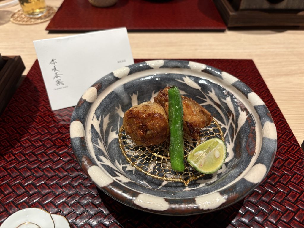 続いて登場した ふぐの唐揚げ は、外はサクッと、中はふっくら。